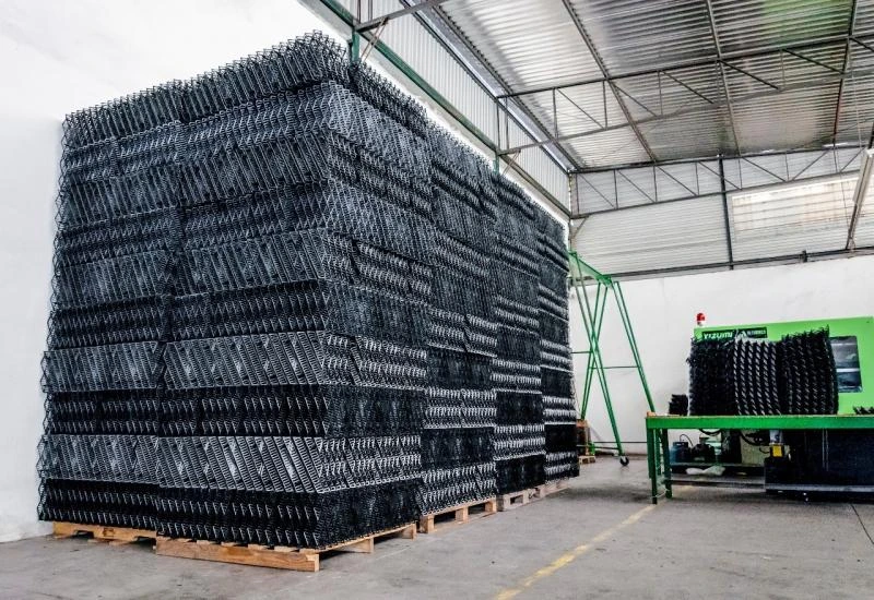- Enchimentos em polipropileno tipo grade: essenciais para otimizar a transferência de calor e a eficiência da torre de resfriamento;